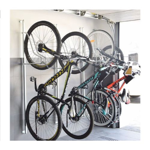 Velosipēdu statīvs WALL PREM 6 riepas platumam līdz 55mm. Paredzēts sešu velosipēdu novietošanai pie sienas. Pilnībā regulējams (uz augšu-leju/ pa kreisi-pa labi) – ļauj pielāgot pozīciju. Statīvu var pārvietot horizontāli, atvieglojot velosipēda noņemšanu un noevietošanu, ja attālumi starp velosipēdiem ir mazi. Maksimālā pieļaujamā slodze: 30kg. Stiprināms ar skrūvēm (komplektā). Komplektā arī stiprinājums aizmugurējai riepai (novērš sienu nosmērēšanos un stabilizē velosipēdu). Materiāls: cinkots tērauds. Savietojams ar velosipēdiem, kam ir dubļusargi, disku bremzes, kā arī elektriskajiem velosipēdiem. Izmēri: statīva dziļums 500mm, statīva vadotnes garums 1800mm (profils 25x25x1.5mm), caurules šķērsgriezums d=18mm, caurules biezums 2mm. Statīvs paredzēts riepas platumam līdz 29×2.2 collām (5.5cm platums). Pieejams arī variants līdz 29×3.15 collām (8cm platums), saderība ar bremžu diskiem līdz d=203mm. Konkrētais modelis bez speciāla roktura (par papildus samaksu pieejams ar speciālo rokturi, kas paredzēts velosipēda pieslēgšanai pie rāmja). Par papildus samaksu iespējams arī nerūsējošā tērauda variants. Svars: 30kg.