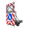 Vienass piekabe ar ceļa zīmju vairogu un LED optikām. Vairogs aprīkots ar 2 gab. dzeltenām, mirgojošām LED optikām – d=300mm un ar 22 gab. dzeltenām LED optikām -d=200mm, kas norāda bultas virzienu. Vairogs aprīkots ar atstarojošu sarkanbaltu uzlīmi un ceļa zīmi. Aizmugurē 2 atbalsta kājas. Piekabe un ceļa zīmju vairogs izgatavots no augstas stiprības cinkota tērauda.